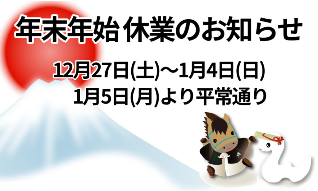休業期間:2025年12月27日(土)〜2026年1月4日(日)